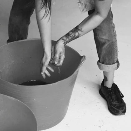 This beautiful object thrown on the wheel is a unique design offering two functions. The larger cup serves as a goblet, with an unglazed tactile exterior surface. Face the other way up, the wide stem contains a hole for a candle, creating a sculptural candle holder. A really playful object that is a joy to use and visual treat on any shelf or table top. Available in four colours in combination and tapered or straight… Read more
