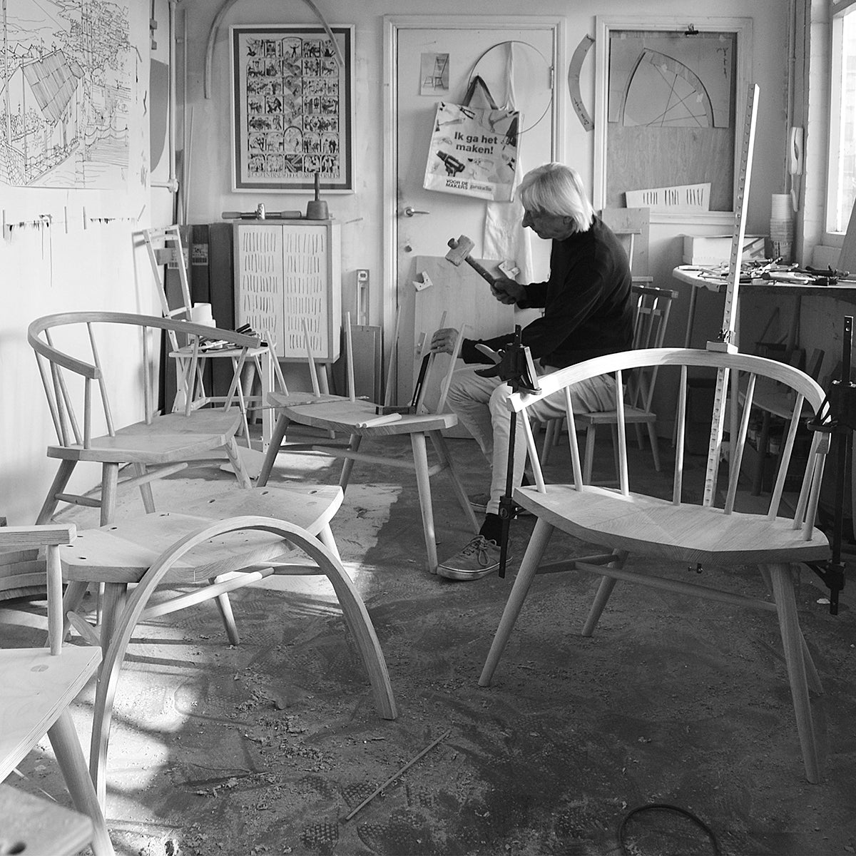 This is a wide, low, comfortable chair, made for relaxing (not dining height). Made in English Ash it is of 'Windsor' construction - the legs and spindles fit into the solid seat. The seat is cut to shape, then cut into three, angled, and re-assembled to form a gentle hollow. This chair was awarded a Design Guild Mark by the Worshipful Company of Furnituremakers in 2012. Individually made by hand by Chris Eckersley in his Birmingham… Read more