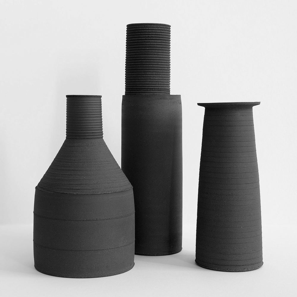 These sculptural 'Redware' pieces are hand-thrown on the wheel with a red stoneware clay. The surfaces of the forms are sometimes marked with grooves, furrows and the like, and then cut up and re-constructed to create one-off pieces heavily influenced by the vernacular of ‘high’ and ‘low’ architecture. They are glazed with a lead-free glaze and fired to 1240 degrees centigrade. The glaze is food-safe and the pieces should be washed by hand.