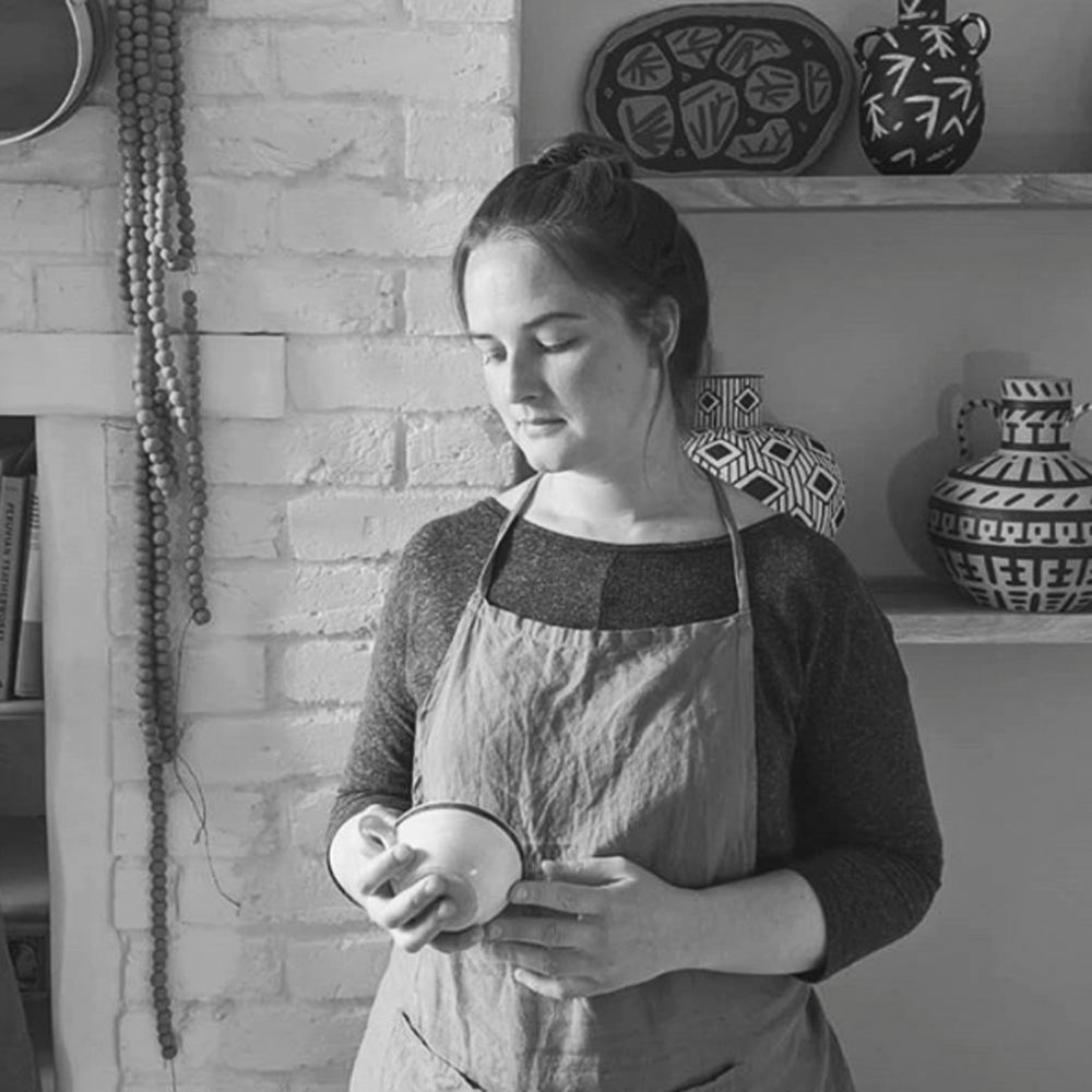 These unglazed white stoneware plates with green slip pattern decoration by Lydia Hardwick.