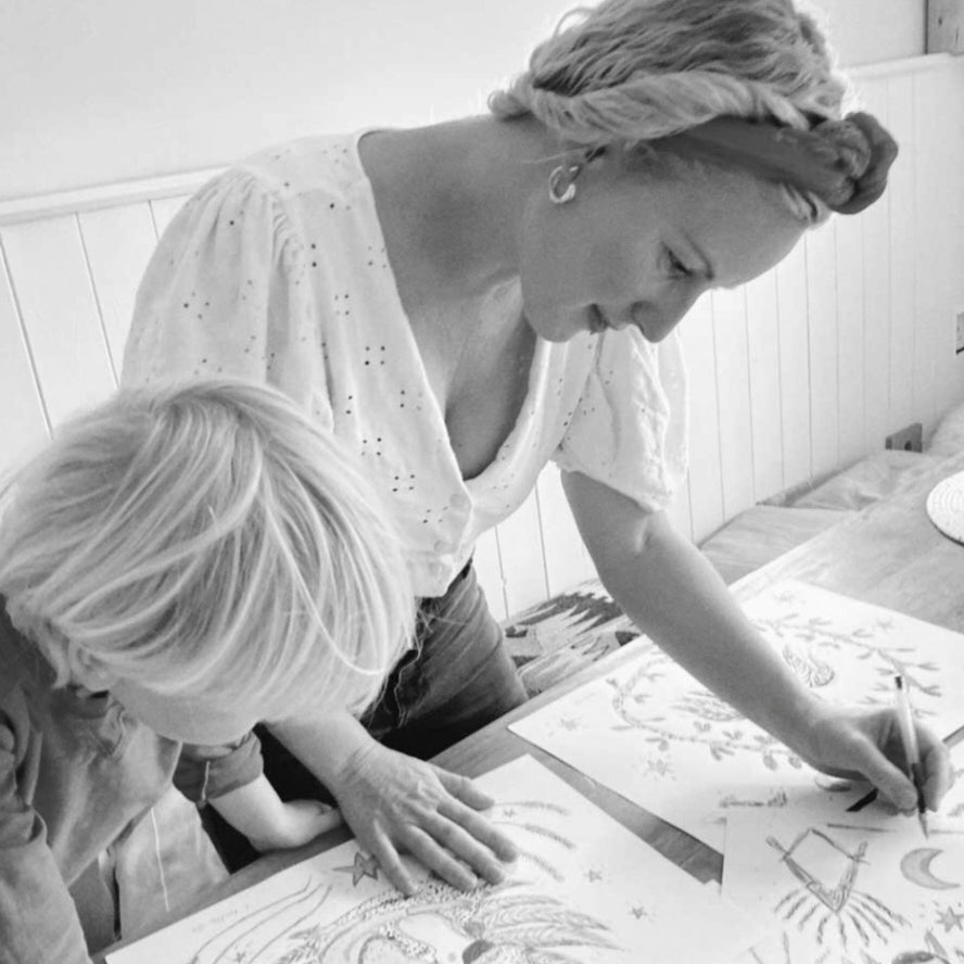 Louise's new drawings of cats and dancers are inspired by vintage black and white photographs of dancing cats in pantomime. These pieces add a fresh, dynamic element to her portfolio, blending her signature style with a simplified monochromatic palette.